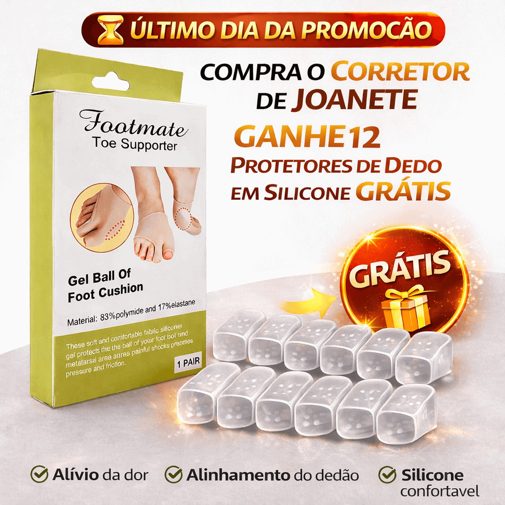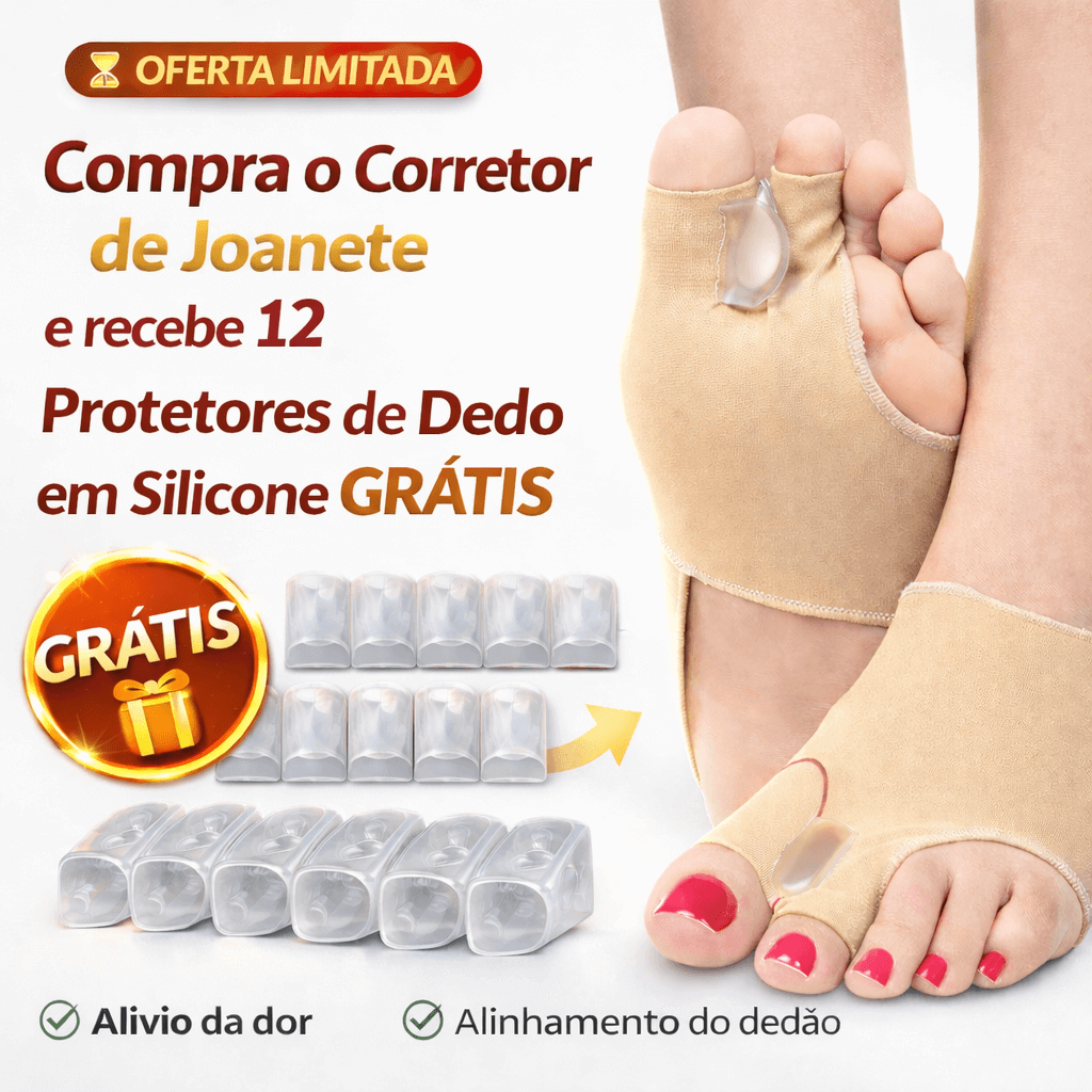 💥 OFERTA ESPECIAL: COMPRA 1 Corretor de Joanete + GANHA 12 Protetores de Dedo em Silicone GRÁTIS 💥