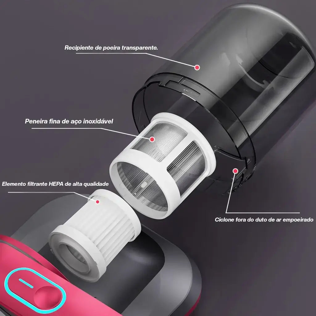 Conheça o poderoso aspirador portátil AcaroFreeXploud® – Sua casa livre de alergias, sujeiras e impurezas! Ideal para quem sofre com rinite, asma, alergias ou simplesmente valoriza um ambiente mais puro e limpo.