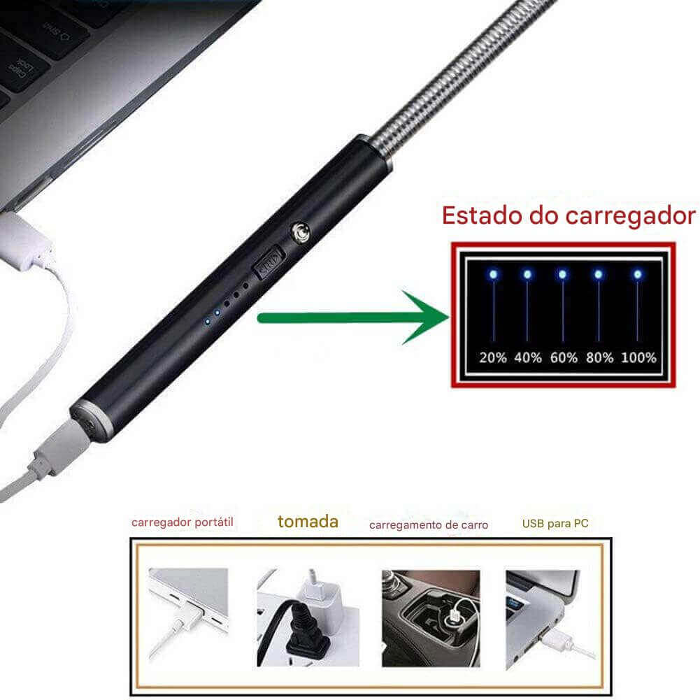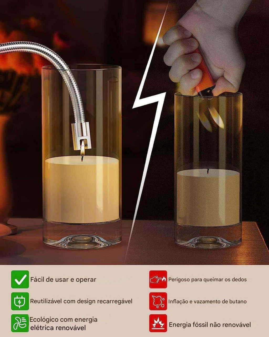 O Isqueiro Elétrico Recarregável 360° traz tecnologia de última geração para acender fogões, velas, lareiras e incensos de forma segura, prática e ecológica — sem chama, sem gás e sem riscos!