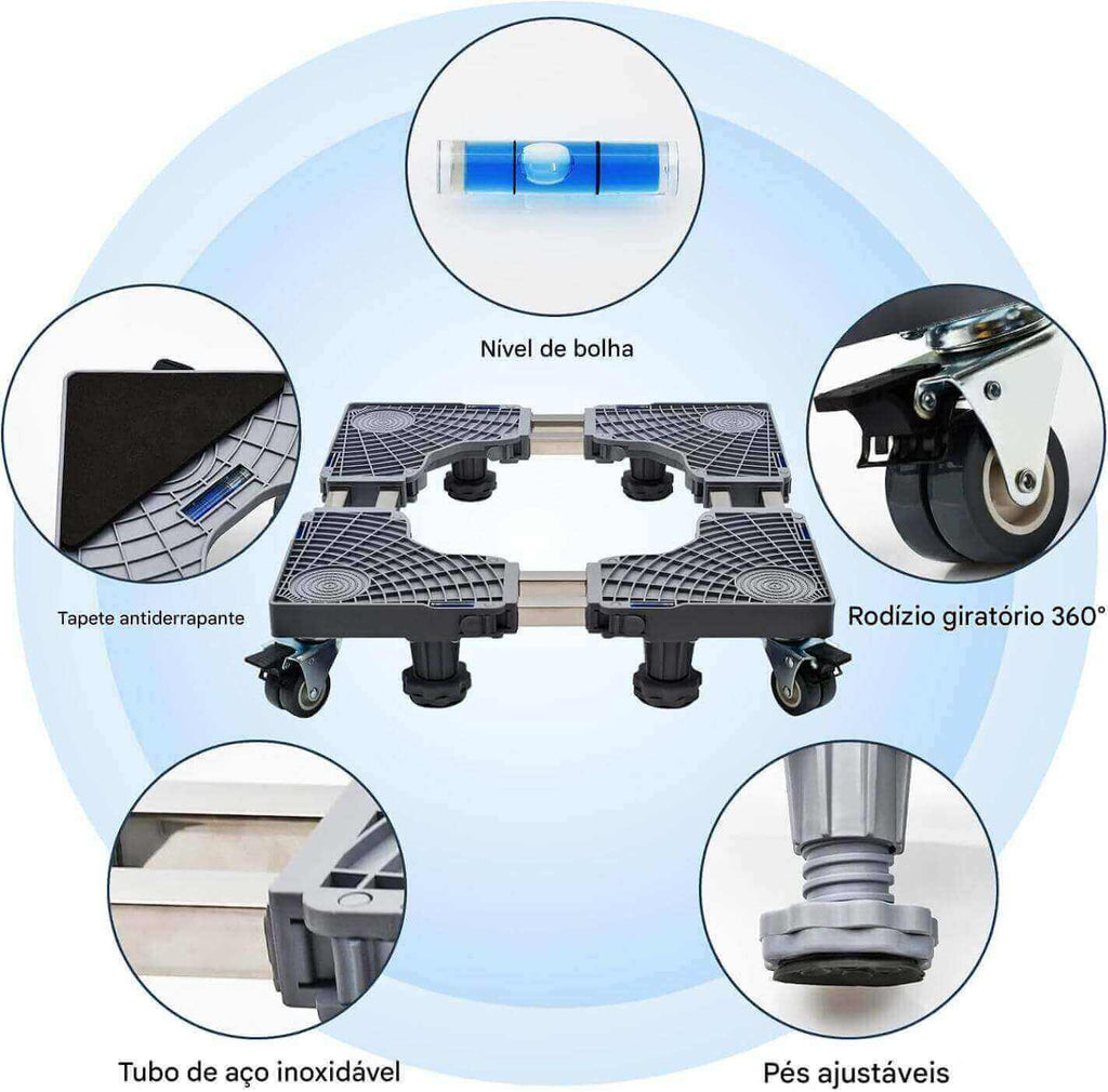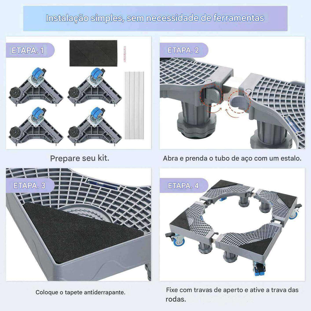 🧩 Suporte Ajustável com Rodas – Mobilidade e Estabilidade Para Seus Eletrodomésticos!