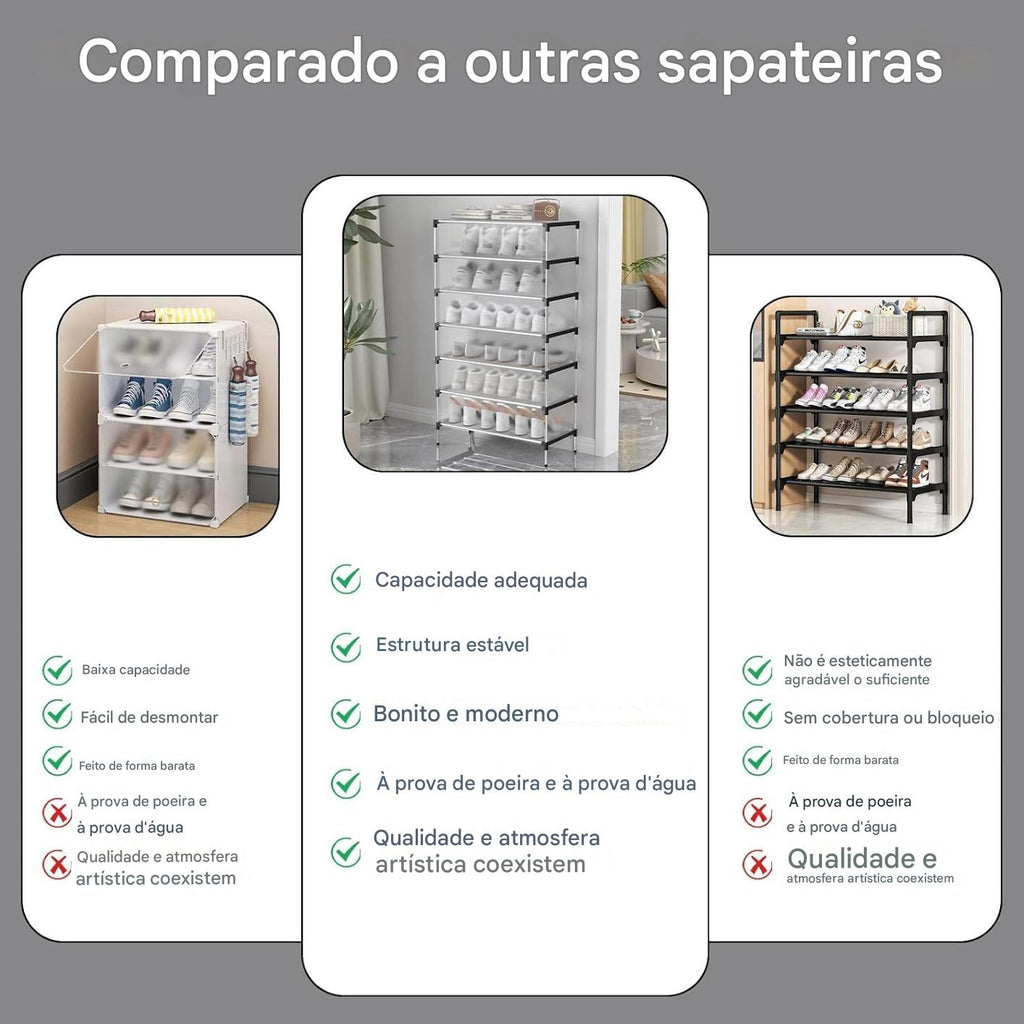 ✨ Mais do que uma sapateira, uma solução completa para deixar sua casa organizada, prática e elegante!