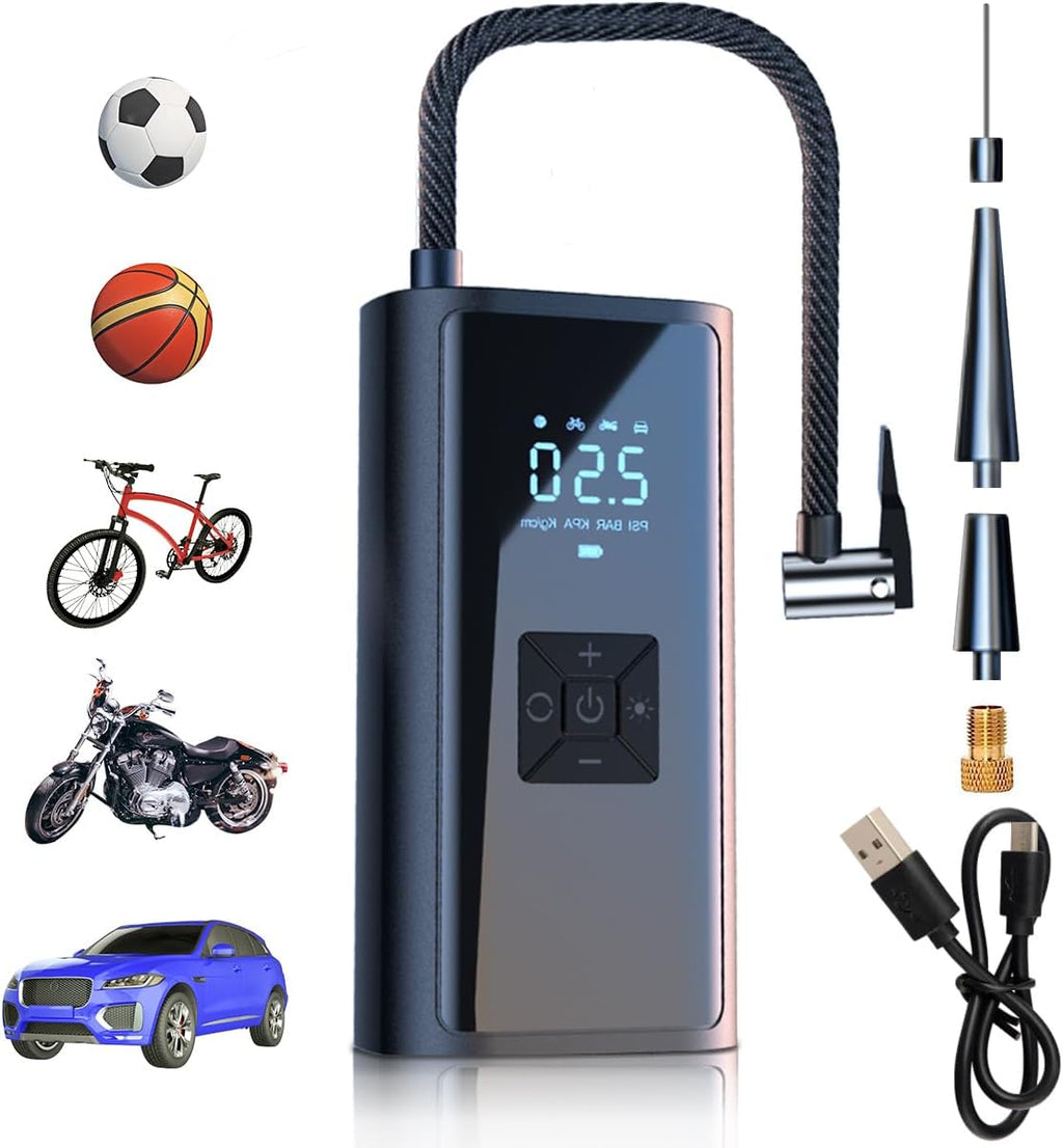 ✅ Multifuncional: ideal para carros, motos, bicicletas, bolas e até colchões infláveis. Inclui botão SOS com iluminação para situações de emergência.