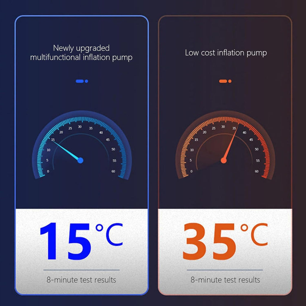 ✅ Inflação Super Rápida: potência de 80W e pressão máxima de 150 PSI, capaz de encher até 4 pneus de carro em apenas 30 minutos. Mais praticidade, menos espera.