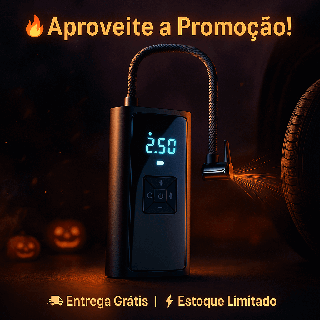 💨 Nunca mais fique parado por falta de ar nos pneus ou em infláveis – leve a solução sempre com você!