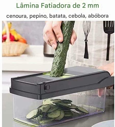 12 Funções em 1: com 8 lâminas intercambiáveis , corte, fatie, pique ou crie tiras juliana em segundos. Ideal para frutas, legumes e vegetais de todos os tipos.