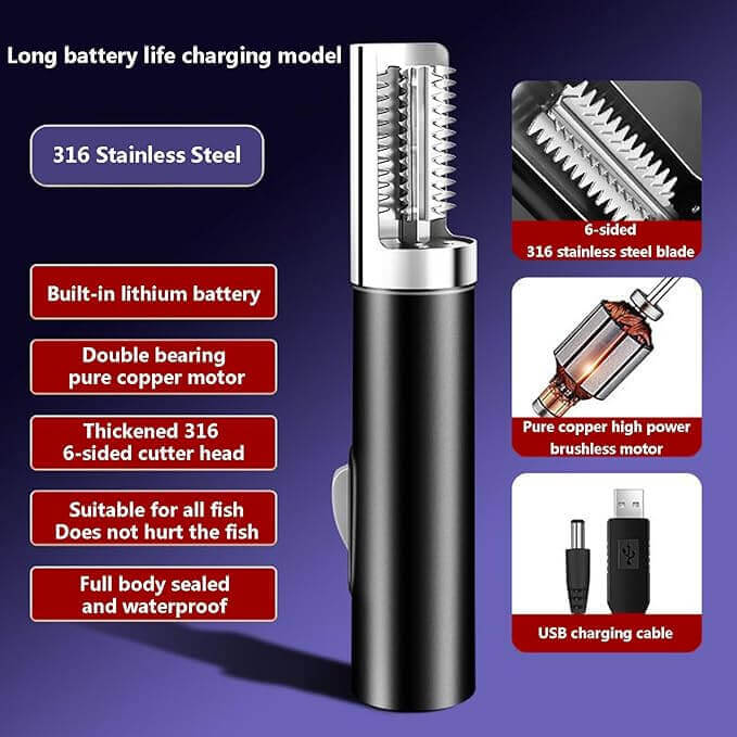A10 - FishClean Max- Escamador Elétrico Portátil;Tecnologia para Limpeza de Peixes sem Esforço,com Rapidez e Segurança