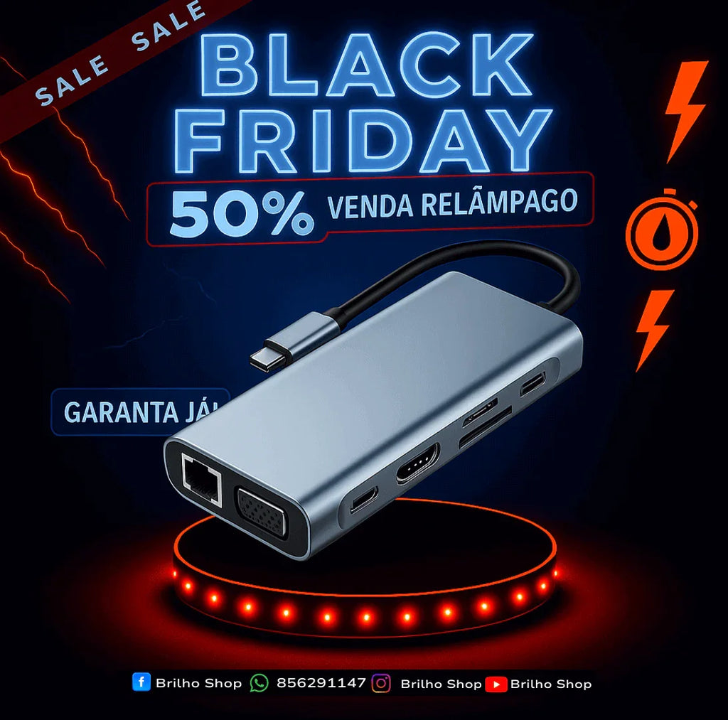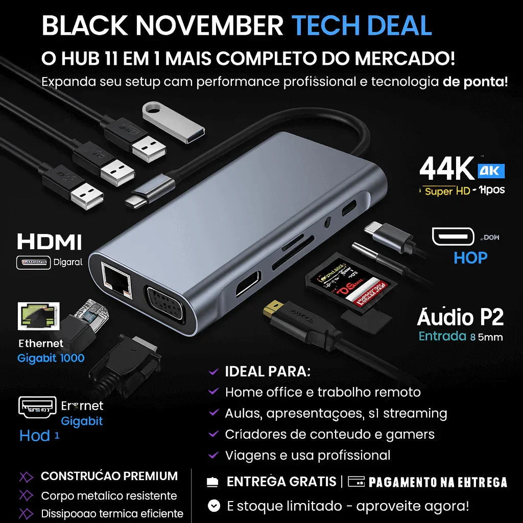 🔌 Hub USB-C 11 em 1 UltraConnect – Expanda Seu Mundo com Apenas 1 Porta!