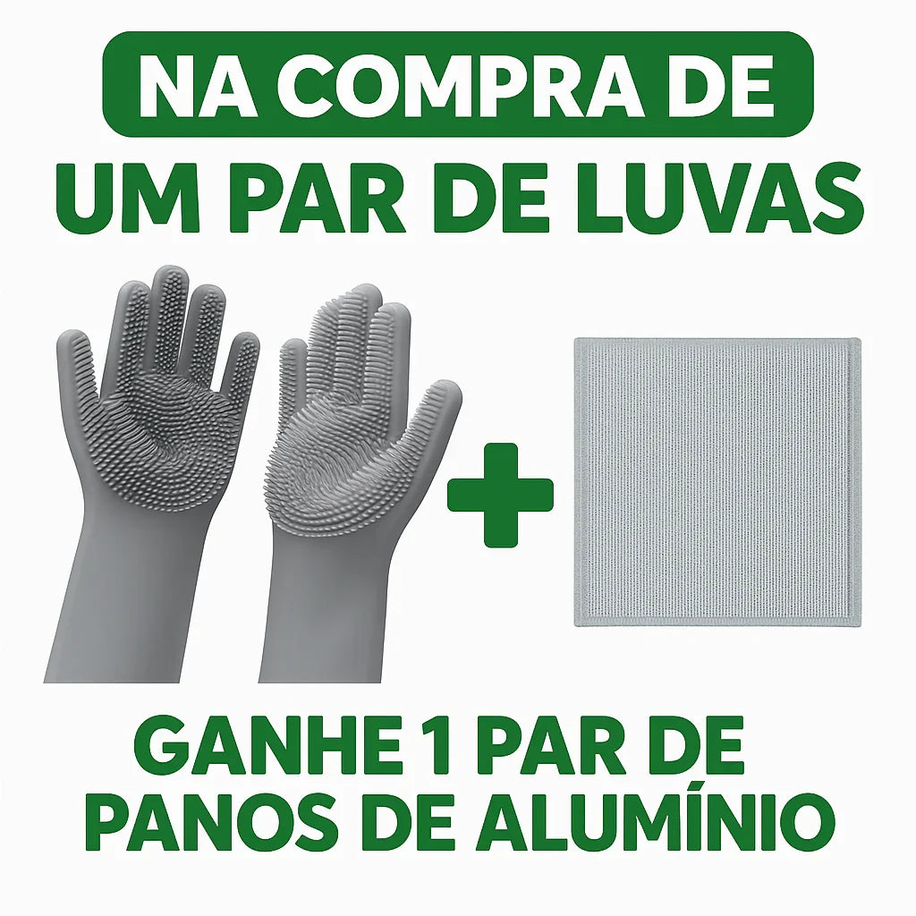 🧼 Kit Limpeza Turbo Pro – Luvas de Silicone + Pano de Alumínio Multiuso