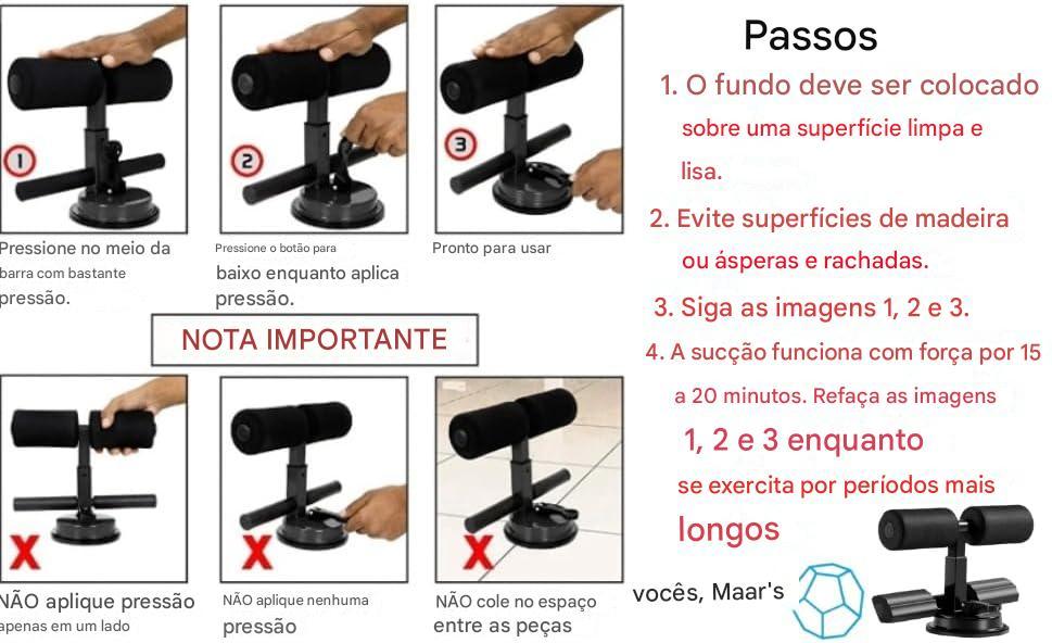 Basta encontrar uma superfície lisa e seca, posicionar a barra e ativar a trava de sucção. Pronto! Seu treino começa em segundos.