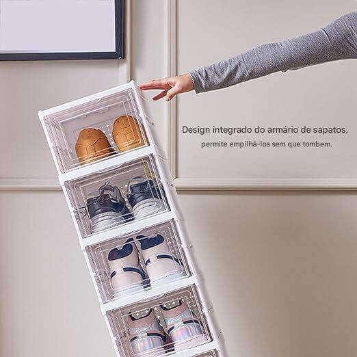 O painel frontal transparente permite ver facilmente todos os seus sapatos , sem precisar abrir cada caixa. Encontre o par desejado num instante — praticidade e estilo em um só produto.