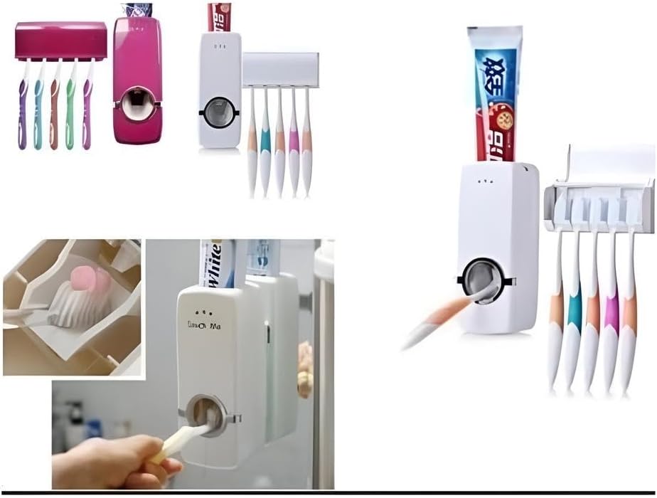 🦷 Dispenser Automático de Pasta de Dente + Porta Escovas – Praticidade e Organização para Seu Banheiro! 🚿