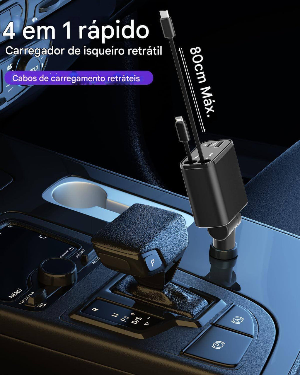 Carregador Turbo 4 em 1 Automotivo com Cabos Retráteis