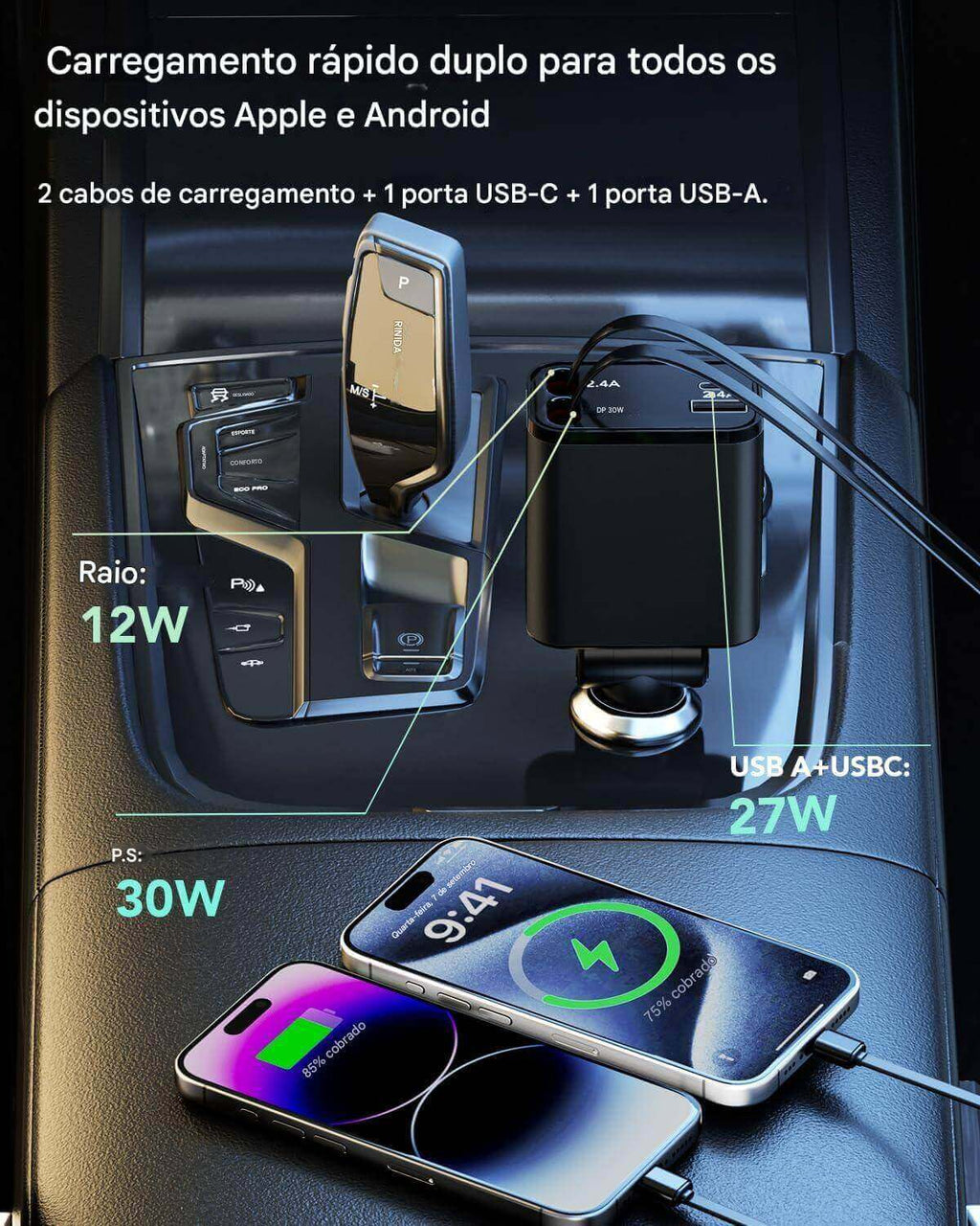 Por que escolher o Carregador Turbo 4 em 1 Automotivo com Cabos Retráteis?