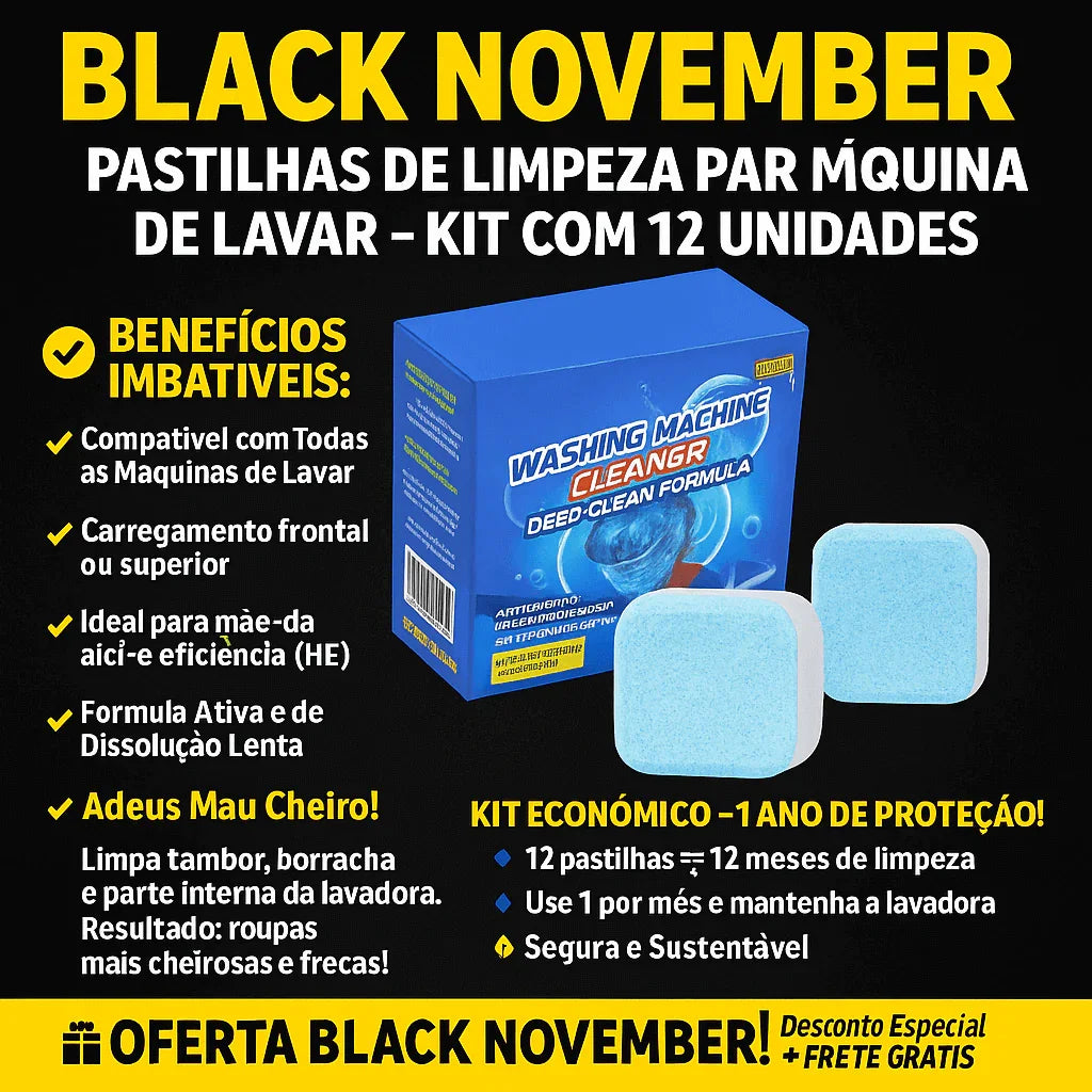 🧼 Pastilhas de Limpeza para Máquina de Lavar Roupa – Kit com 12 Unidades